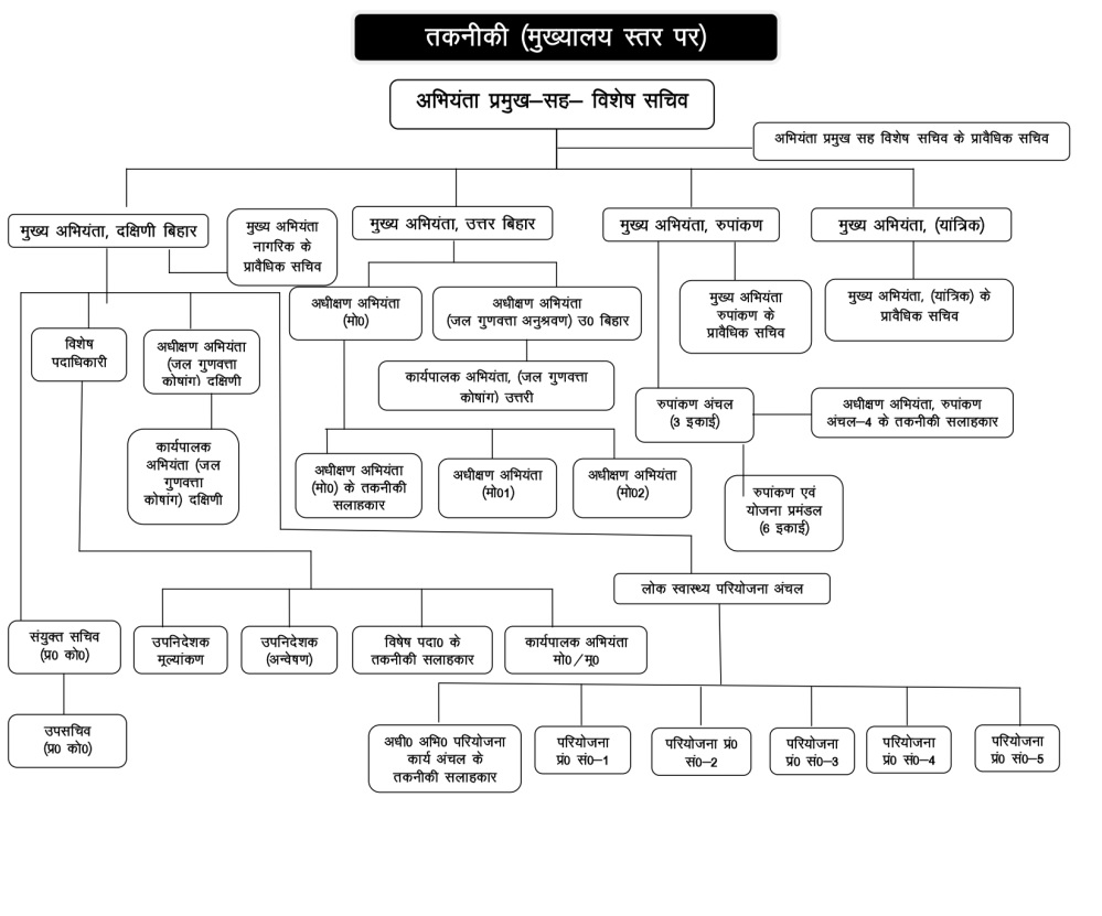 Organizational Structure of Public Health Engineering Department, तकनीकी (मुख्यालय स्तर पर)